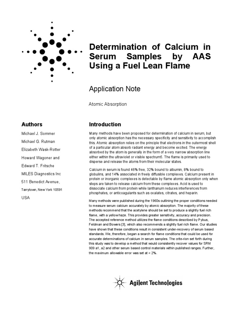 Determination of Calcium in Serum Samples by AAS Using A Fuel Lean
